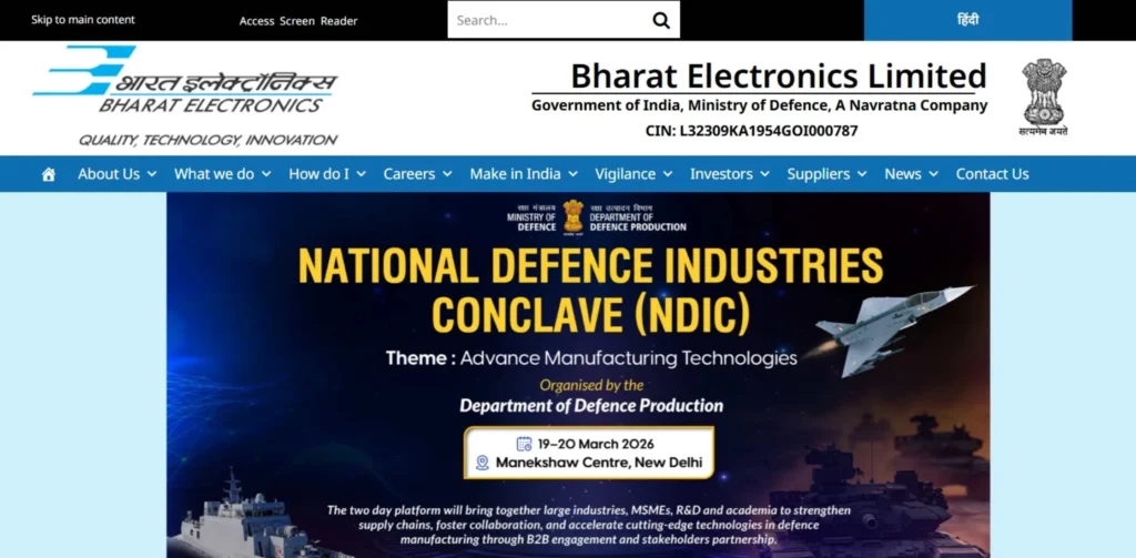 Bharat Electronics LimitedDefense Electronics₹17,800+ CroresRadars, Electronic Warfare, CommunicationJalahalli