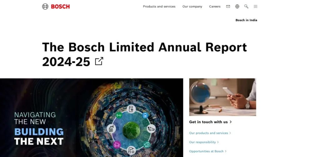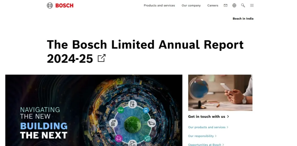 Bosch LimitedAutomotive Components₹18,500+ CroresAuto Electronics, Diesel Systems, Power ToolsAdugodi