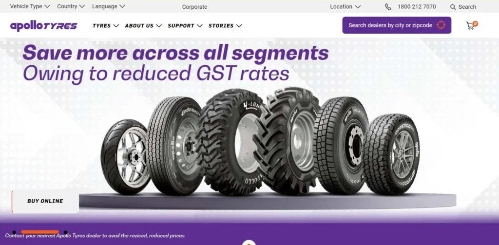 Apollo TyresTyresAuto & Agri TyresPresence in 100+ countries6.5
